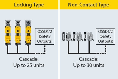 Simplifies safety interlock wiring and cuts the total # of safety outputs down to a single pair of OSSDs.