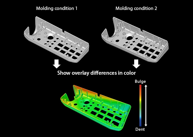 - Overlay scans from different molding conditions to pinpoint subtle shape variations.