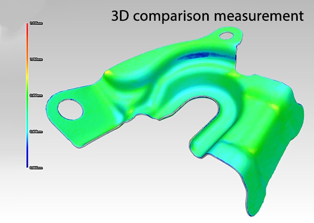 The results can be displayed as a color map showing deviation magnitude across the part, making it easy to assess conformance to design requirements. This visual analysis quickly highlights areas exceeding tolerance limits, enabling rapid quality decisions for even the most complex free-form geometries.