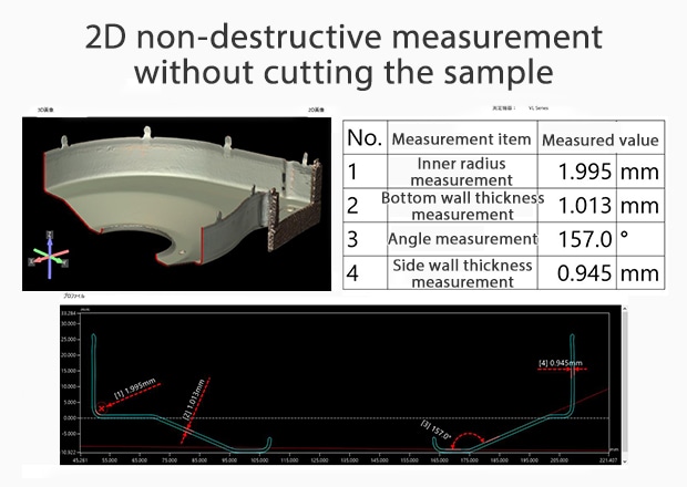 Traditionally, thickness is measured using tools like calipers, caliper gauges, or micrometers. However, for complex shapes, these tools may not be able to physically reach the measurement area. In such cases, the only option is destructive testing, which involves cutting the sample for measurement. But depending on the sample, cutting can cause deformation, affecting the measurement values.
