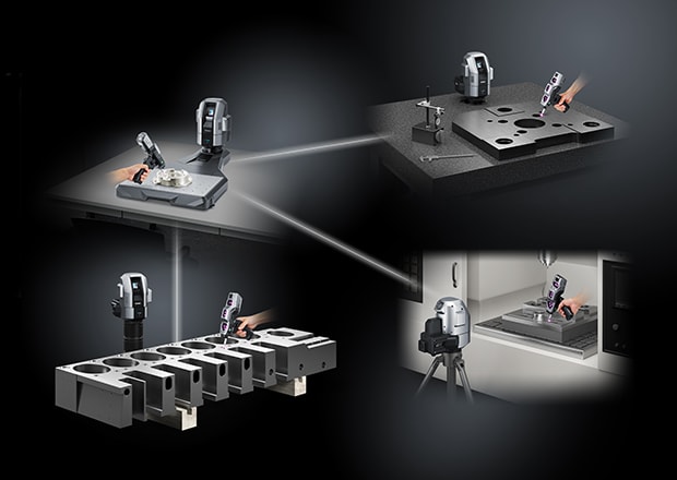 KEYENCE portable CMMs come equipped with technology that tackles the unpredictability of the shop floor. They are easily maneuverable around unpredictable spaces by hand, on a stage, tripod, or cart, and have a temperature compensation function for volatile environments.