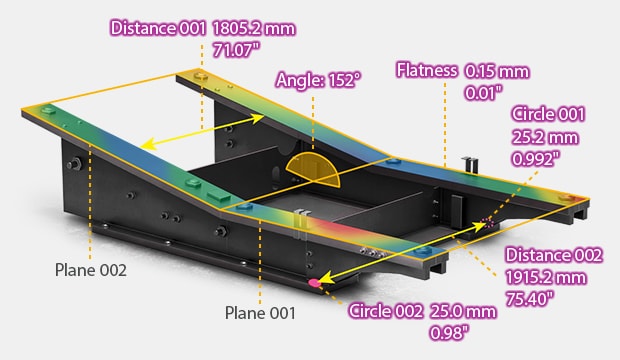 3D/GD&T Measurement is possible for a variety of characteristics, including width, height, squareness, and hole distance.