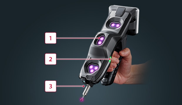 The probe is equipped with 7 different markers in 4 different directions for a total of 28 probe markers. This allows users to adopt a more flexible approach to scanning.