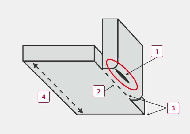 To prevent these defects, it is necessary to observe the minimum bending radius. However, the minimum bending radius varies depending on the material, sheet thickness, die, and other factors, making it difficult to calculate the correct value using a mathematical formula. Therefore, it is necessary to set the minimum bending radius based on experience or testing, and incorporate countermeasures to prevent cracking in the design and metal working.