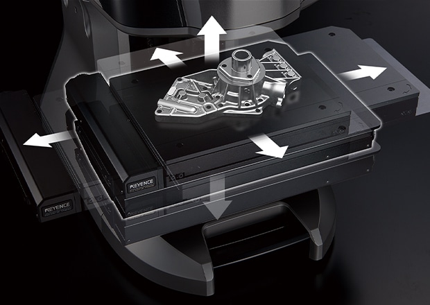 3D shape measurement can be performed easily just by placing the target on the stage and pressing a button. Because automatic position adjustment is possible based on target feature data, strict leveling or positioning is not required. This series also includes the industry’s first Smart Measurement function that automatically configures the measurement range and moves the stage according to the target size. This eliminates the work required to set the measurement length and Z-range.