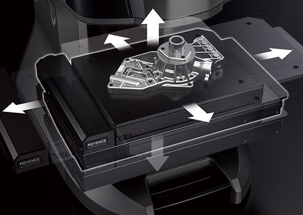 3D shape measurement can be performed easily just by placing the target on the stage and pressing a button. Because automatic position adjustment is possible based on target feature data, strict leveling or positioning is not required. This series also includes the industry’s first Smart Measurement function that automatically configures the measurement range and moves the stage according to the target size. This eliminates the work that was required to set the measurement length and Z-range.