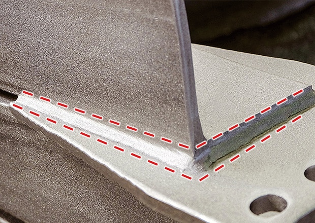 The part indicated by the red broken line in the image is the welding bead. The appearance and optimal dimensions (width, height) of a welding bead vary depending on conditions such as the welding method, purpose, welded location, and material.