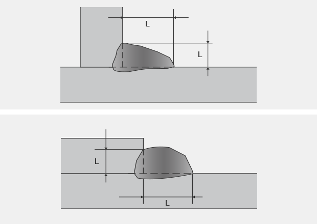 * L = Leg length (Must be 80% or more length of thinner base metal thickness.)