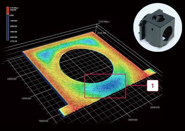 When measuring a small sink mark of 1 mm2, it is extremely difficult to measure the shape accurately by targeting that location with the probe and creating a virtual surface. It is also difficult to identify the accurate shape when measuring the 3D shape of a small area due to the small number of measurement points. Much work is also involved with related tasks such as tabulating the measurement data and comparing the results with the drawings.