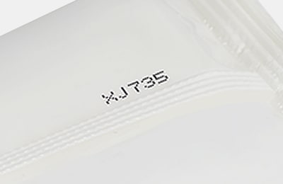 Yes, the KEYENCE MK-G Series can adhere well to commonly used plastic polymers such as polyethylene (PE), polypropylene (PP), polyethylene terephthalate (PET), and polyamide (PA). If adhesion is an issue due to dust, powders, or liquids on the film. KEYENCE also offers a brand-new type of technology for multilayer film in the FP-1000 Series UV laser coder. This UV laser marks below the laminate layer of the film and can mark through liquid and powder on the surface of films.