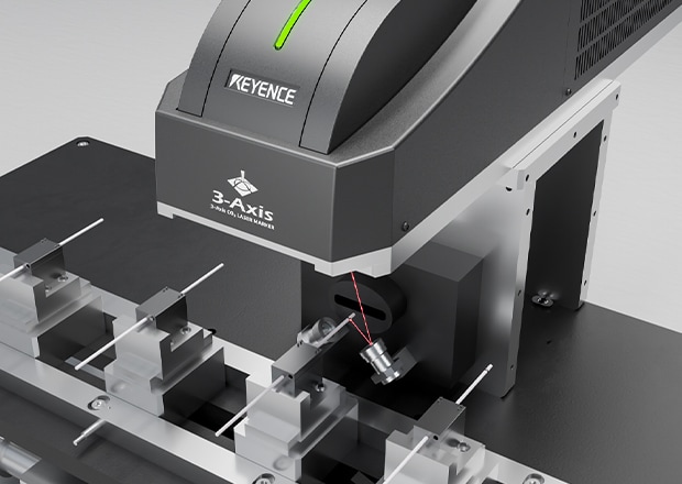 KEYENCE laser markers have 3-axis capabilities making marking around cylinders or other 3D geometries seamless without the need for part movement.