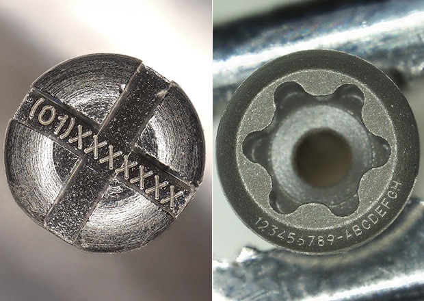 The laser beam creates a permanent mark by altering the surface of the titanium at a microscopic level. Markings resist abrasion, chemicals, and high temperatures. As a result, traceability is ensured throughout the product's lifespan.