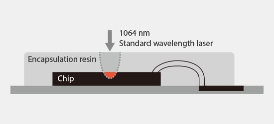 As electronic components such as mobile terminals become smaller every year, the thickness of the encapsulation resin that covers internal devices has also become thinner. As a result, there is a concern that laser energy transmitted through the encapsulation resin will cause internal damage when using a standard wavelength laser.