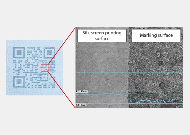 On a silk screen layer, it is possible to carry out the marking without the silk peeling. Due to variations in the thickness of the print itself, delicate stable marking needs to be performed without breaking the layer.