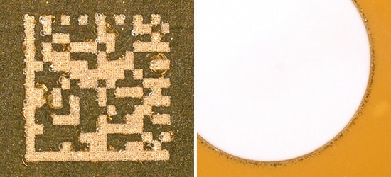 A barcode reader was used to confirm the quality and stability of marked codes and achieved 100% reading results. Since the materials used in PCBs can be very heat-sensitive, too much heat can distort or ruin a mark. Precise control of the heat and energy during marking helps to ensure a highly visible, crisp mark.