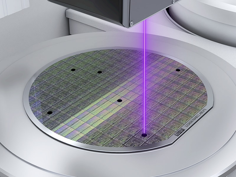 - UV laser "cold" marking minimizes heat-affected zone (HAZ) and reduces surface damage on wafers.