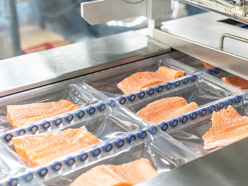 Seafood processors face unique conditions. Packaging lines may operate in chilled rooms where condensation is common. Films are often slick, variable in texture, or exposed to water and brine.