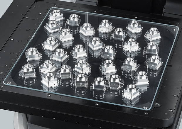 Manufacturers can choose different stage sizes and camera heads to match their specific etching inspection needs. The system is able to measure up to 1000 parts at once with just the push of a button, allowing for high-volume inspection with ease. Additionally, when initially setting up a program, the system automatically adjusts lighting and focus, making setup faster while giving consistent results even when etched parts have different surface textures.