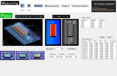 The intuitive operation of the dedicated user interface makes it possible to easily create inspection settings for 3D vision systems. Inspection results are even displayed in real time.