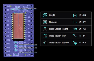 Even appearance inspections that utilize height data can be set by simply selecting the area and feature to detect. Defect detection, surface warpage, and more can be detected regardless of patterns or features on the surface of the target. This once difficult task with 2D inspection can now be performed with ease.