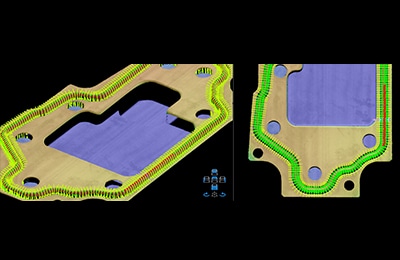 A specialized tool for the measurement of sealants and adhesives is also available. Settings can be easily configured even for complex shapes just by clicking the application area. There is no longer any need to construct algorithms to set the area for complex shapes, a task with a previously high degree of difficulty.