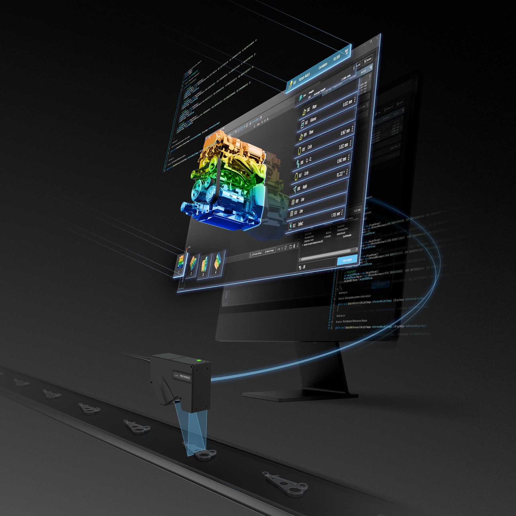 With our powerful automatic source code generation function, what once required extensive time and specialized expertise can now be achieved quickly and effortlessly. Even teams with only 2D inspection experience can easily create advanced 3D inspection programs—accelerating development and reducing costs. Our software includes a rich suite of useful 3D inspection tools: high-precision measurement and appearance inspection tools, position correction, intelligent noise reduction, image composition, and stunning 3D visualization capabilities. The intuitive interface enables you to configure everything with ease, while the automatic source code generation function seamlessly integrates your customized settings into production-ready programs. Unlock faster innovation, simplify complex development, and empower your engineers to deliver next-generation inspection systems with ease.