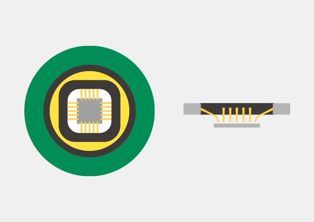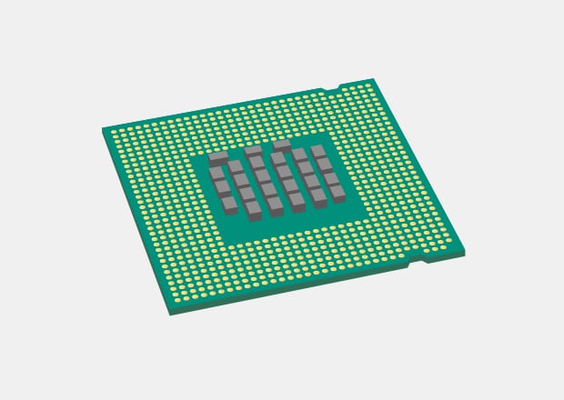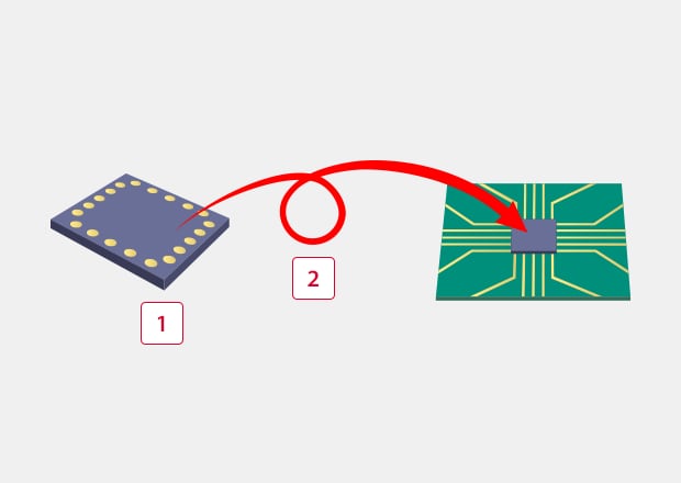 IC chips are attached directly to PCBs. This method is called FC-BGA (Flip Chip-BGA). Bumps are made at the electrodes of an IC chip and connected to the electrodes of a PCB. Using this method can save space compared to wire bonding.