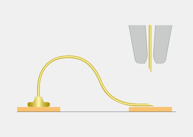 The capillary is moved to the 2nd bonding point by pulling the bonding wire in a continuous loop.