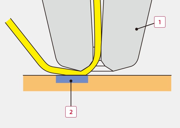 When connecting to a lead electrode, no ball is made and the wire is mashed by the capillary. This is called "Stitch Bonding" or "2nd Bonding."