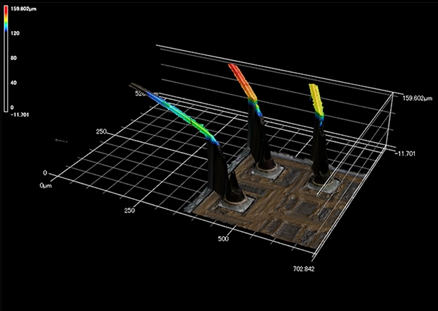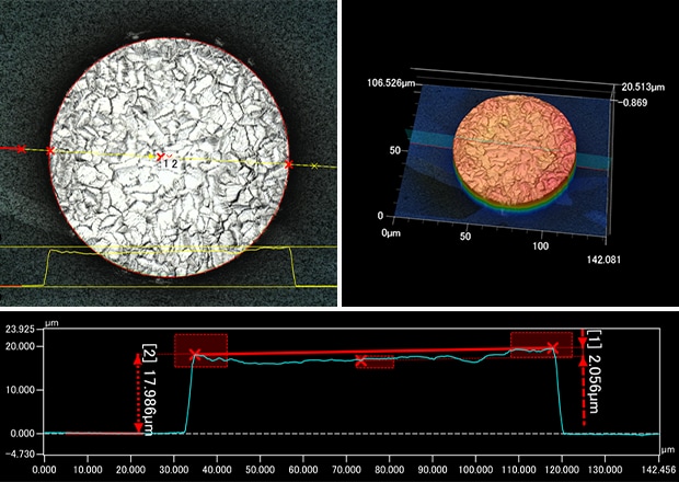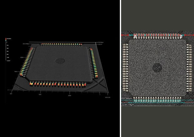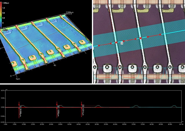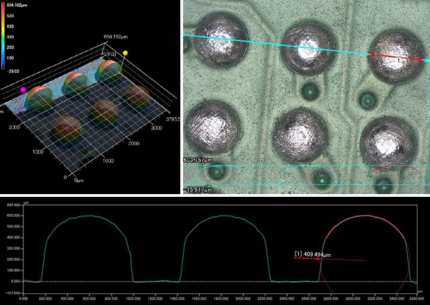 The popularity of 5G as a standard for cellular networks has lead to the miniaturization of semiconductor devices, which in turn has increased the need for precise inspection and analysis. The latest features of KEYENCE's VK-X3000 Series allow it to perform repeated measurements, location-based programs, and pass/fail inspection through templating. This section introduces technical information and inspection application examples for BGA, wire bonding, contact probes, and similar cases where many inspections are carried out with laser microscopes.