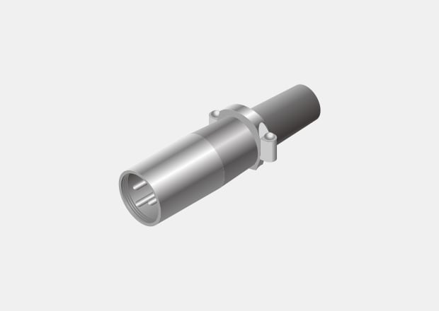 The male side of a pair of mating connectors that has a needle shaped contact.