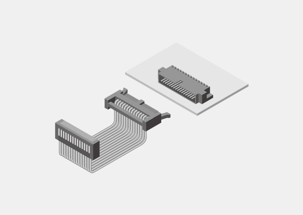 This connector is used to connect a flat cable. The male side is called the header and is used as a set with the socket.