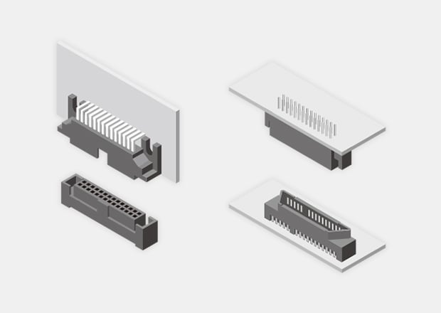 The shape of the connector differs when boards are stacked on the top and bottom and when one side is connected standing up. It is used as the header and socket set.