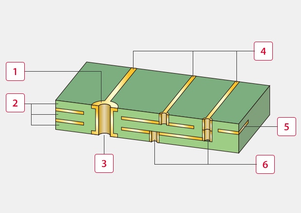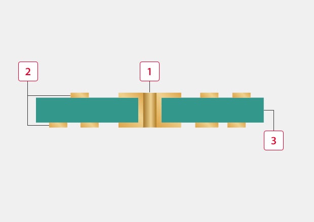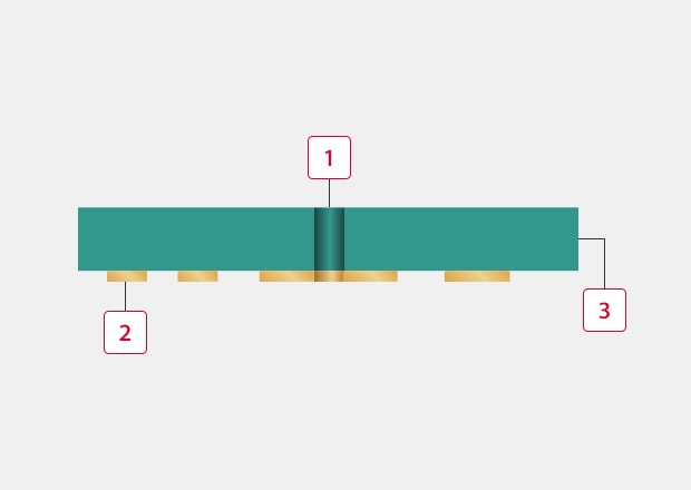 This type has non-through holes that are made by drilling or punching and aren’t plated. They are mainly used for mass produced electronic appliances for consumer use to reduce production costs.