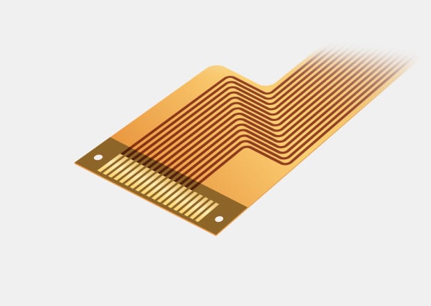 Flexible boards are commonly used to fit inside moving parts or cases that fold. Film materials, including polyimide, are used for these boards. The boards are thin and have a flexible structure.
