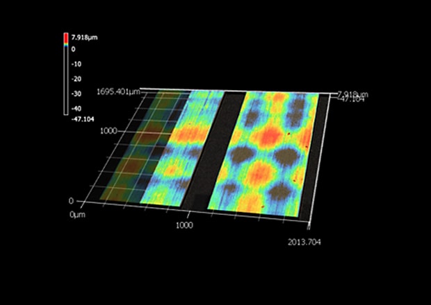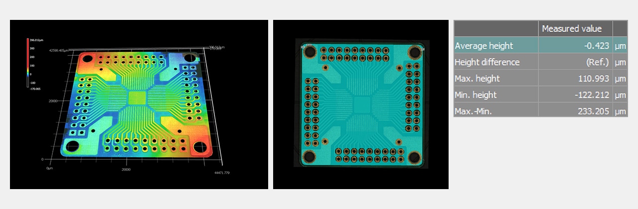 The height color display makes it possible to visualize warpage.