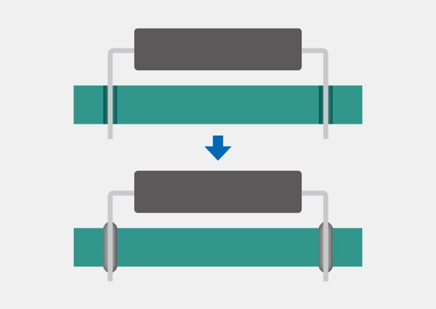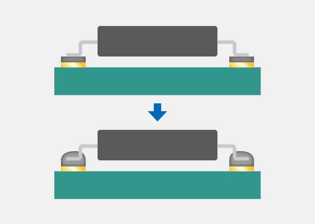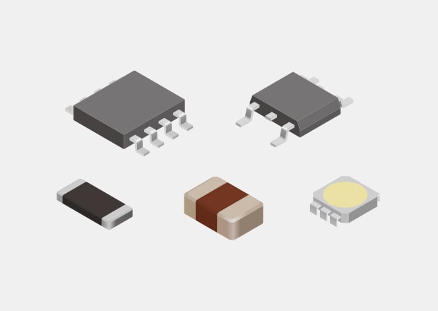 The current mainstream PCB mounting method is Surface Mount Technology (SMT). Electrodes are soldered to pads on PCB surfaces without using through holes. Unlike IMT, the electrodes don’t penetrate, so many components can be mounted on both sides of the PCB, allowing for smaller PCBs. Components mounted without lead are referred to as SMDs (Surface Mount Devices).