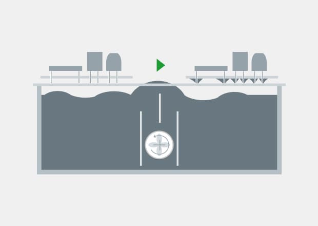 The bottom of the PCB is soaked in a soldering pot filled with melted solder. This is mainly used to mount lead-type DIP parts. There are 2 types of soldering pots: static soldering pots in which the melted solder surface is still, and wave soldering pots in which the surface is moving.