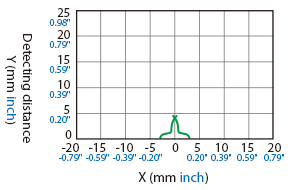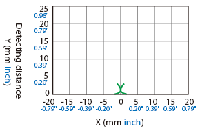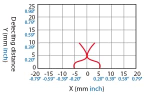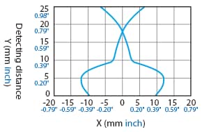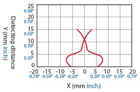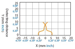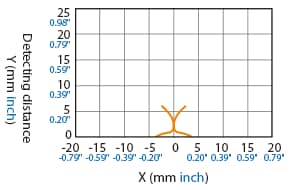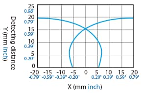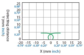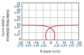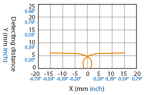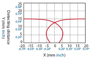 The following shows the position of the ON point when the standard detectable object (specified in the specifications) is moved parallel to the sensor in the direction of the arrow.