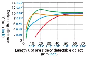Variation of Detecting Distance According to the Size and Material of the Detectable Object (Typical Example)