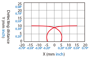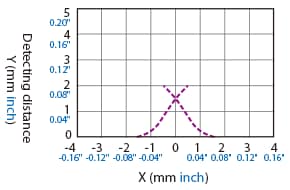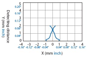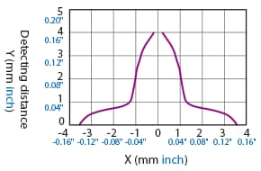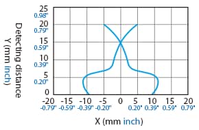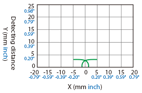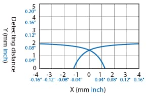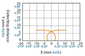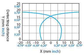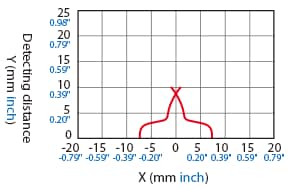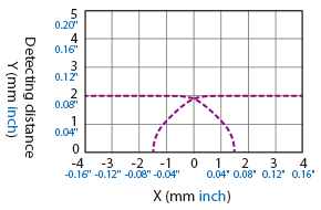 The following shows the position of the ON point when the standard detectable object (specified in the specifications) is moved parallel to the sensor in the direction of the arrow.