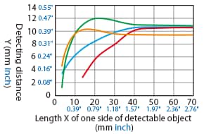 Variation of Detecting Distance According to the Size and Material of the Detectable Object (Typical Example)