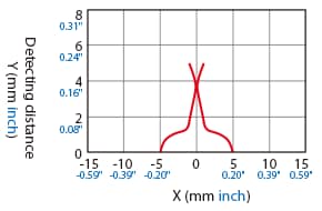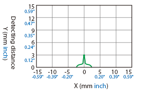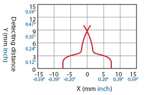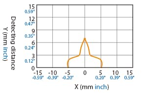 The following shows the position of the ON point when the standard detectable object (specified in the specifications) is moved parallel to the sensor in the direction of the arrow.