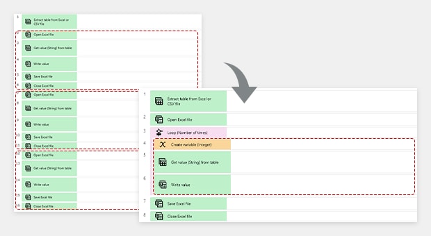 - Smart process recording: Record on-screen operations for automatic scenario creation