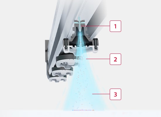 Cam positioner static elimination starts with controlling the air and surfaces around the conveyor. KEYENCE ionizers deliver balanced positive and negative ions that neutralize static before it can discharge near control sensors. The SJ-Q Series achieves a ±3-volt ion balance and completes static elimination in as little as 0.1 seconds. Featuring the world’s first Inside Supersonic structure, it projects ions directly toward charged targets, maintaining neutral conditions even at close range. For wider conveyors, the SJ-E Series provides high-flow coverage that stabilizes multiple transfer points at once.