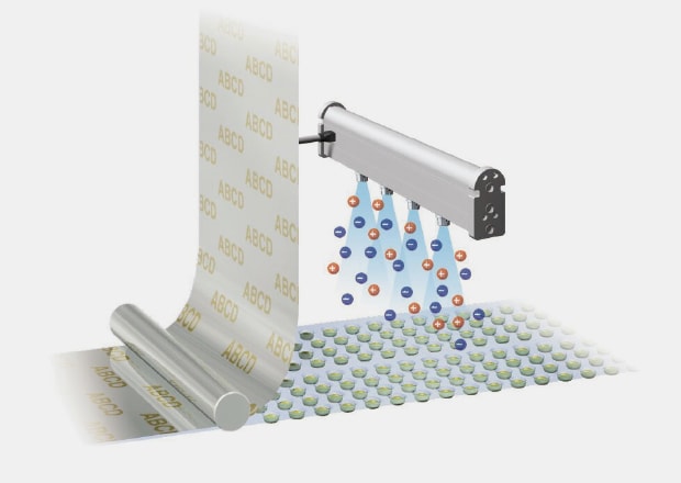 Ions eliminate static electricity, which helps prevent foreign particles from clinging and avoids defective packaging. The operating ratio can be improved.
