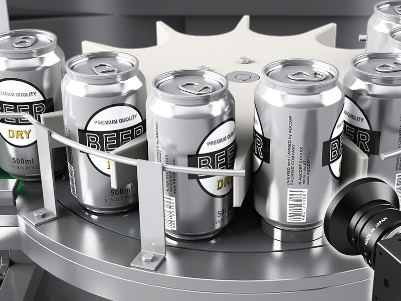 KEYENCE line scan cameras deliver full-surface inspection for metal food packaging at high speeds. As each can rotates through the inspection zone, the system captures a continuous image that unwraps the entire circumference. Built-in edge detection and contrast tools help identify issues such as dents, print drift, or foreign material.