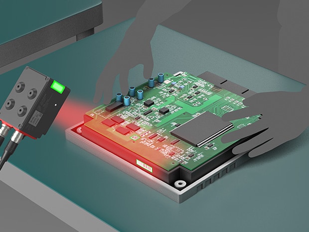 To address this issue, installing a fixed-mount code reader, as shown in the image, enables completely hands-free reading. Operators can concentrate on handling and assembling the boards, and the ID is automatically read as soon as the product enters the field of view. This directly leads to shorter takt times and reduced operator workload.