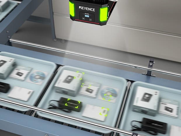 The solution to this challenge is 'bulk tray reading' with the KEYENCE logistics code reader, SR-5000 Series. With its overwhelmingly wide field of view and high-speed reading performance, it instantly scans all the barcodes and 2D codes printed on multiple products in a tray at once, without stopping the conveyor. It recognizes codes with high accuracy even if their position or angle is off, eliminating the need for prior alignment work.