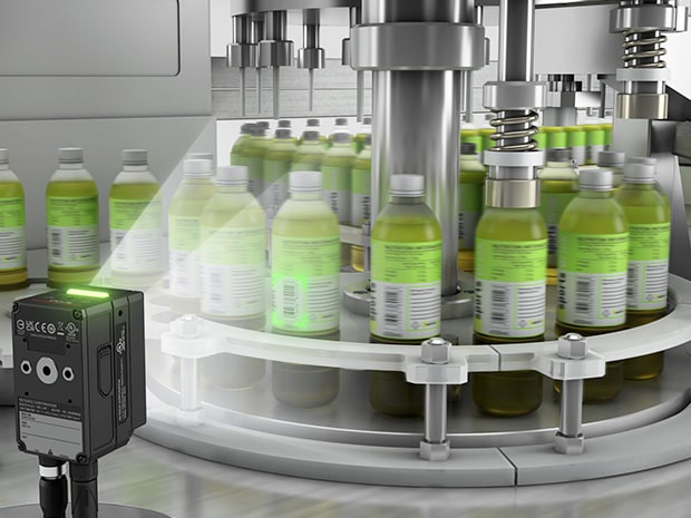 On production lines in the food, beverage, and pharmaceutical industries, individual management and traceability of bottles transported at high speed are essential. However, there was a challenge in stably reading barcodes and 2D codes printed on cylindrical bottles moving at high speed, such as on rotary filling lines, due to reflections from curved surfaces and glossy labels.